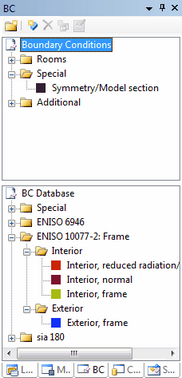 The top tree view displays the boundary conditions that are present in the active document. The bottom tree view displays boundary conditions from a boundary conditions databank, which can be used for all documents.