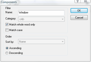 icon in the Flyout toolbar, or use the context menu command (right click) Define Filter.... The Components Search dialog window appears.