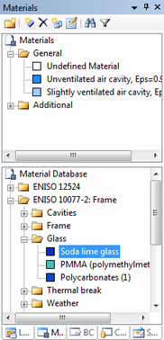 The top tree view displays the materials that are present in the active document. The bottom tree view displays materials from a material databank, which can be used for all documents.