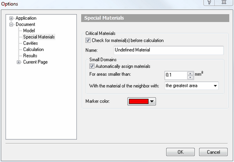 Determines whether domains that do not exceed a certain size and have a critical material should automatically be assigned a material according to certain standards. The critical size and the standards can be determined separately. |