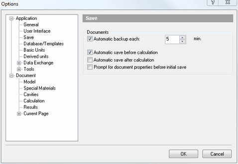 Determines whether the current file will be saved before the model is calculated. If the file has not yet been saved, then a file dialog will appear, where you can enter the file name and path. |