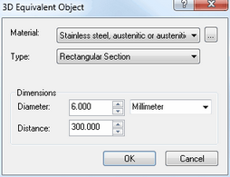 Select the material of the 3D object in this list. The equivalent material properties are calculated either by geometric mean or according to pr EN ISO 12631, depending on the diameter, the distance and the adjacent materials. |