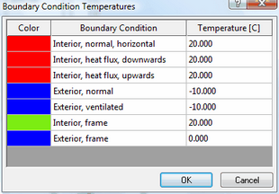 Click on a temperature to edit its value. This dialog window can be activated from the context menu Boundary Conditions flyout.