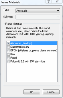 For the automatic calculation of window frame U-values (Uf-Value; cf. also tutorial 4) and joint U-values (UTJ-Value; cf. also tutorial 5) all frame materials must be known.