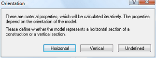 For EN ISO 673 standard materials with temperature dependent thermal conductivities (cf. Materials) the orientation must be known if a calculation is to be made. You can define the model orientation before hand in the Model Options dialog window.