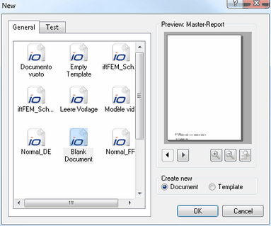 The New File dialog window can be activated by using the context menu command New from the File menu. You can either create a new document on the basis of a template, or you can create a new template. Template creation is described in more detail in tutorial 6.