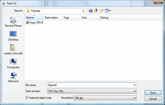 In this dialog window, the properties of the picture export (graphic file type, resolution) and the file path can be determined.