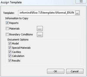 The Document Template dialog window can be activated by using the command Template from the File menu. All reports and settings will replaced by the selected template. Creation of a new document template is explained in further detail in tutorial 6.