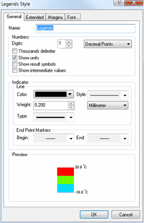 This setting group determines the properties of the label lines (color, style, size and type). Note that some of the lines cannot be shown when their thickness exceeds 0.394 mm. |