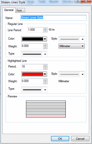 This style is used when streamlines are displayed. The graphic properties of the streamlines as well as the streamline period can be adjusted.
