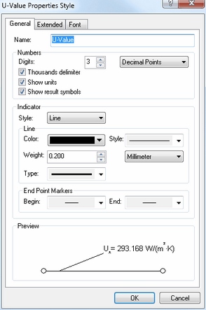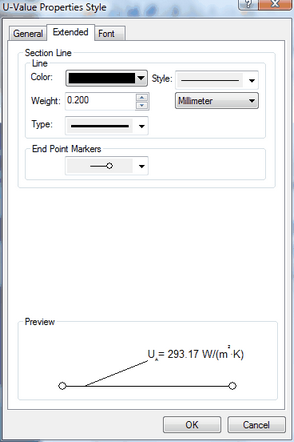 This style is used when you are working with the U-Value tool. The U-value style consists of a section line (line segment with two end point markers), and of a connected label line.