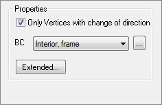 When you have activated the tool, choose the desired boundary condition from the Boundary Condition flyout or from the Boundary Condition drop down list in the tool properties (see figure 3). Set the mouse on the spot on the edge of a domain from which the boundary condition should be valid, and click on the spot. If the option Only vertices with change of direction is checked, the boundary condition will be assigned to the nearest corner with change of direction. The boundary condition is now represented as a point, which has the color of the corresponding boundary condition (see Boundary Condition flyout). Only the start points of the boundary conditions are defined (see figure 1). The boundary conditions are shown deferred as polygons, if the corresponding option is selected in options dialog window (cf.User Interface Options dialog window). When you calculate the construction, the validity of the construction is also computed. After doing so, the boundary conditions will be shown with the corresponding color around them (see figure 2).