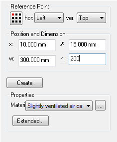 determines the position that defines the reference point. The reference point can be a corner, midpoint or the center of an object. The selected point is marked in red, and can be changed with the mouse or the arrow keys. When all the parameters have been defined then you can finish the process by clicking on the Create key.