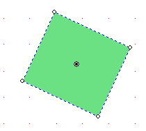 Click on the object to be rotated, if the object is not yet selected. The corners of the object will be shown as white dots. There is a further black dot in the center: the center of rotation (see figure 1).