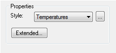 The presentation of an object can be defined in the Style list of the Temperature tool properties. The list shows all styles for temperature objects that have previously been determined in the Styles flyout.