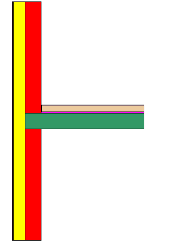 Floor Construction: - Wood flooring (Timber 700 kg/m3 L=0.180) - Cement screed (L=1.400) - Wall sound insulation stripping (Insulation L=0.040) - Footfall sound insulation (Insulation L=0.040) - Reinforced concrete ceiling (Reinforced concrete (with 1% steel) L=2.300)